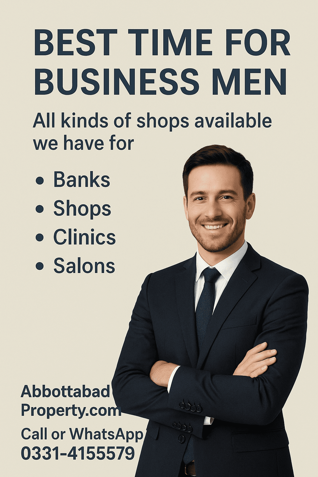 Situated in the heart of Abbottabad’s commercial hub, this property offers maximum exposure and business potential for any brand or enterprise.